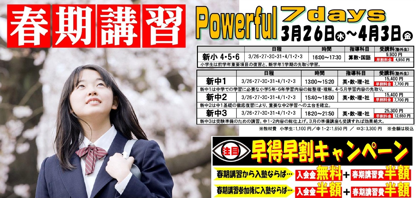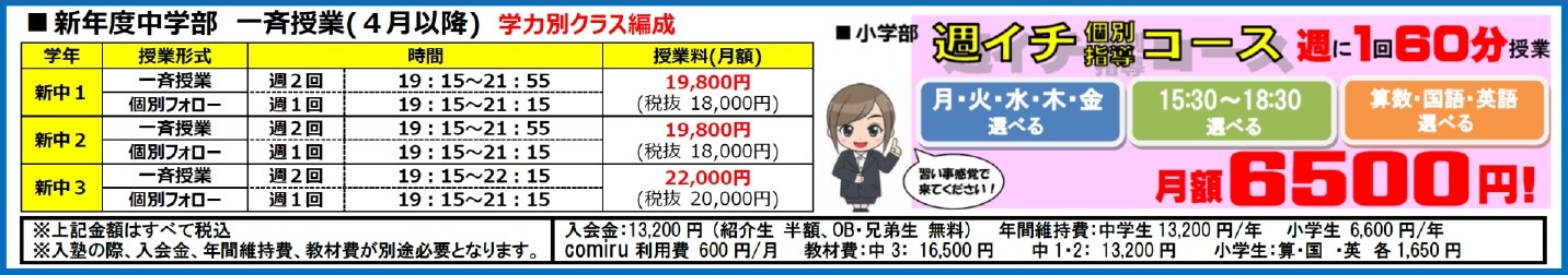 ※月途中の入塾の場合、回数により割引致します。