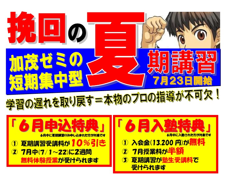 2020.06.16 kamosemi 夏期講習2020 個別説明会 カレンダー 日時: 2020年6月22日 @ 2:00 PM – 6:00 PM Repeats 2020-06-22T14:00:00+09:00 2020-06-22T18:00:00+09:00 場所: 加茂ゼミナール美濃加茂本部校 田島町1丁目19 お問い合わせ: 加茂ゼミナール美濃加茂本部校 0574-25-8750 メール 本部校 資料ダウンロード・お申込み・お問い合わせ 資料ダウンロード 2020夏期講習ご案内ダウンロード お電話でのお申込み・お問い合わせ下記までご連絡ください。 加茂ゼミナール美濃加茂本部校(Tel:0574-25-8750) メールでのお申込み・お問い合わせ当HPお問い合わせページより必要事項をご記入の上、ご送信ください。 お問い合わせはコチラ